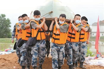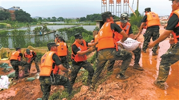 面对严峻汛情,人民解放军和武警部队闻令而动、勇挑重担,全力以赴应对主汛期大洪水,守住洪涝灾害防御底线。消防员、志愿者、救援队、劳模突击队迅速集结,和当地干部群众一起争分夺秒、艰苦奋战,确保人民群众生命财产安全。