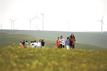 盛夏时节,位于内蒙古乌兰察布市察哈尔右翼中旗的辉腾锡勒(黄花沟)草原旅游区鲜花盛开,郁郁葱葱,一派迷人景象。