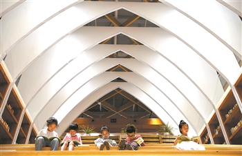 8月4日,小朋友在合肥长江180艺术街区拾光书屋里阅读。