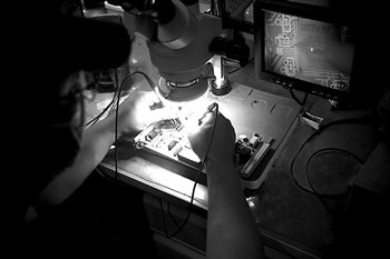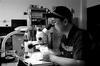 中国铁路广州局集团有限公司株洲机务段株洲检修车间的80后工长周俊龙化身“医生”,借助显微镜给机车电子插件做“微创手术”。在显微镜下,元器件故障逐一显现,他手中的烙铁便如“手术刀”,直击“病灶”。今年以来,周俊龙修复各类和谐号机车电子插件30块,节约成本近60万元。