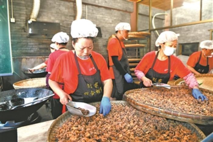 8月5日,工作人员在制作丰盛古镇特色美食——四合胡豆。