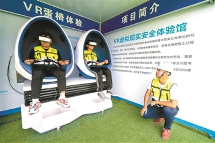 8月6日,工人在VR安全体验馆内接受安全教育。