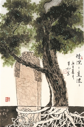 好在这个方向以及指引方向的“路标”非常清晰,那便是人与自然的关系。现在,当我们把目光推近则不难发现,作品表现的是人与树的关系,人与树木生死相依,不离不弃,超越物质形态生命、超越时空限制的情感和大爱。