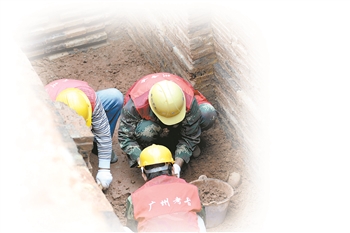 考古人员在广州横枝岗进行考古挖掘工作。 视觉中国 供图