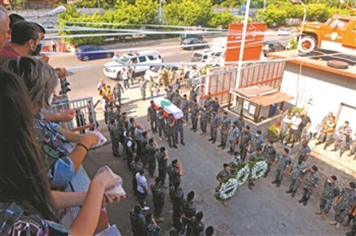 8月12日,人们在黎巴嫩贝鲁特送别在大爆炸中牺牲的消防员乔·努恩。