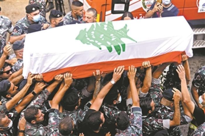 黎巴嫩贝鲁特消防队连日举行葬礼,送别在贝鲁特港口区大爆炸事故中牺牲的消防员。