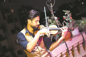 ②3月31日,在埃及开罗,小提琴家穆罕默德·阿德尔在阳台上演奏小提琴。防控宵禁期间,穆罕默德·阿德尔在自家阳台上举办“音乐会”,为邻居演奏音乐舒缓情绪。