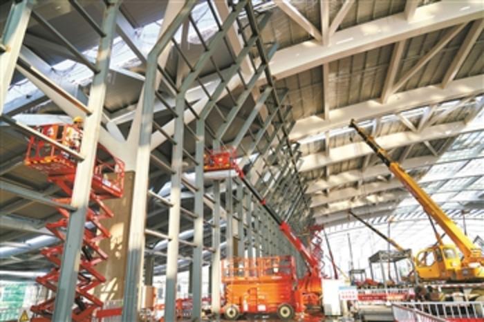 图为工人在京雄城际铁路雄安站施工(8月13日摄)。
