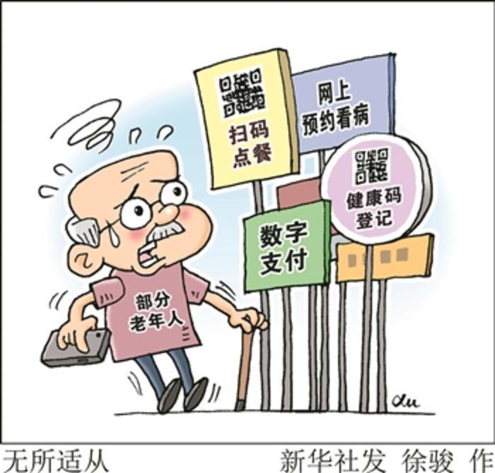 数字支付、网上预约看病、扫码点餐、健康码登记……智能时代,数据的互联互通方便了人们生活,也助力了疫情防控。但记者近日采访发现,科技在给人们打开便利之门的同时,也限制了很多老年人的自由。新华社发 徐骏 作