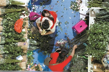 为了让鲜花能尽快到达客户手中,围绕花卉产业的诸多环节,如花农、花贩、批发商、鲜花经纪人、主播、物流工人等,就得在不同的时间点上抓紧忙碌。