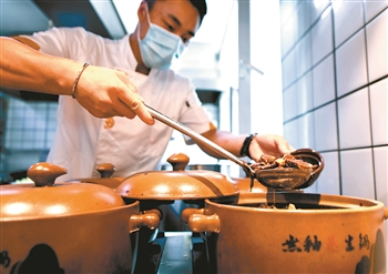 吉林省长春市永昌路上一家餐厅,一改东北餐饮习惯的大菜码,以小份砂锅菜为主要特色,不浪费、价格便宜的同时可以让顾客多品尝几样特色菜,深受市民喜爱,成为新的“网红”餐厅。 新华社发 (颜麟蕴 摄)