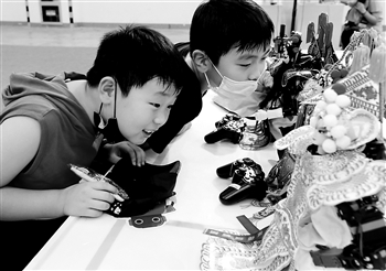 8月15日,江苏省苏州市的两位小朋友正在观看非遗仿生机器人。当日,苏州国际博览中心举办“2020全球人工智能产品应用博览会”,1000多款仿生机器人、智能物流系统、虚拟主播、自动驾驶汽车等人工智能产品纷纷亮相。