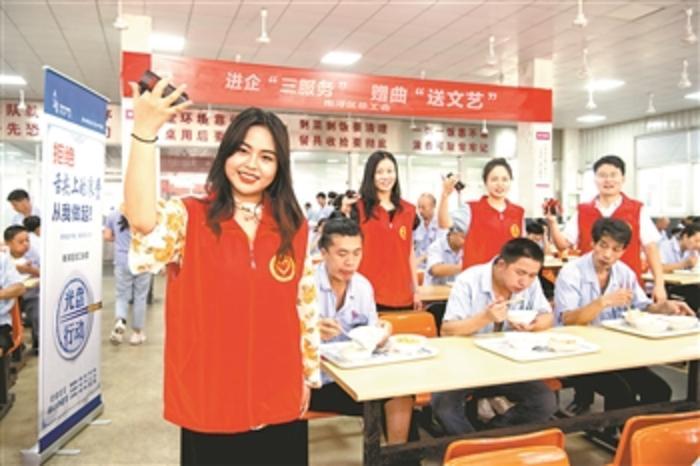 南浔区总工会组织文艺轻骑兵,把“拒绝舌尖上的浪费”“垃圾分类”等内容,以快板、小品、歌舞等形式送到职工身边。据悉,南浔区总在开展“三服务”活动中,紧贴职工需求,把文化送进企业,丰富职工文化生活。
