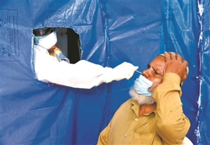 8月22日,医务人员在印度海得拉巴为居民做新冠病毒检测采样。新华社发
