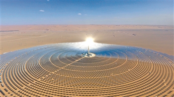 该电站占地7.8平方公里,超过1.2万面定日镜以同心圆状围绕260米高的吸热塔,通过聚光吸热、储能换热等环节后将太阳能转化成电能,可24小时不间断发电。近年来,在光伏发电技术的带动下,敦煌市光伏产业迅速发展,不少能源企业纷纷来此落户,投资建设光伏发电项目,有力提振了当地经济。