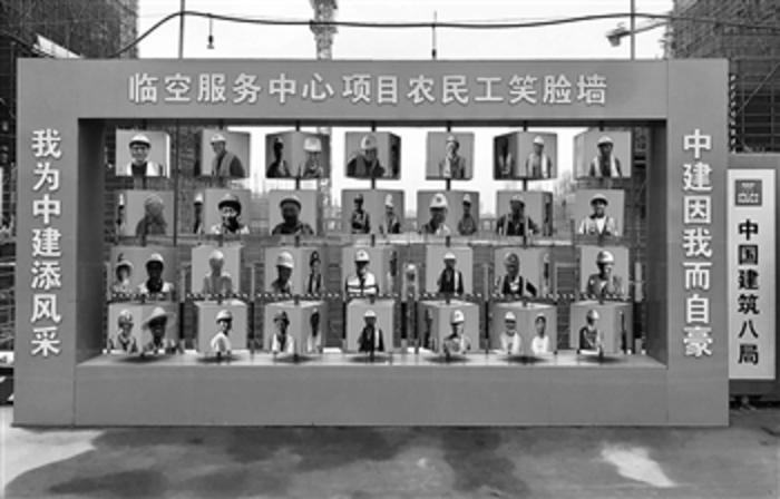 临空服务中心项目位于北京大兴国际机场临空经济区(廊坊片区)航空物流区起步区内,自开工建设以来,一线项目人员主动放弃休假,春节期间坚守岗位,保障项目建设有力有序推进。图为临空服务中心项目农民工笑脸墙,捕捉了自项目开工以来,多位农民工开怀一笑的瞬间。