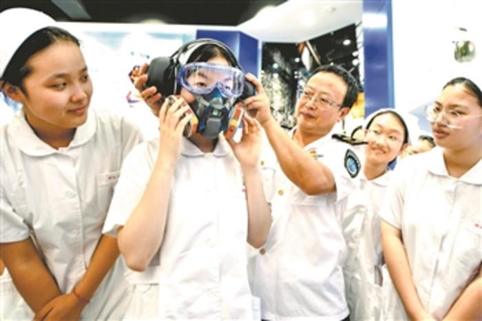 当日,湖州中等卫生专业学校举行“医防融合 致敬天使”主题活动,护理专业学生走进疾控中心实验室和卫生监督所体验医护职业,参观新冠病毒检测实验室,参与理化项目检测实验,并进行集体宣誓,弘扬爱国主义精神和南丁格尔精神。 谭云俸 摄/人民视觉
