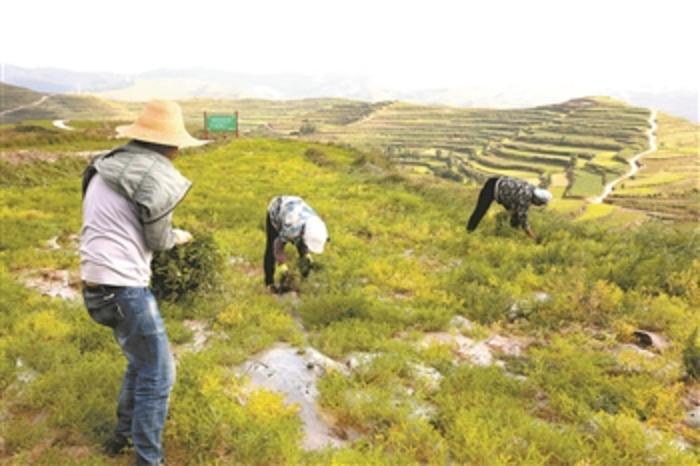 甘肃省宕昌县依托独特的地理和气候环境,自古就有种植中药材的传统。近年来,当地通过统筹规划,积极改善种植方式,在5个乡镇76个村规划建设11.27万亩中药材绿色标准化生产基地。同时还引进技术领先的中药生产企业在当地投资建厂,带动当地农民脱贫增收。 本报记者 王伟伟 摄