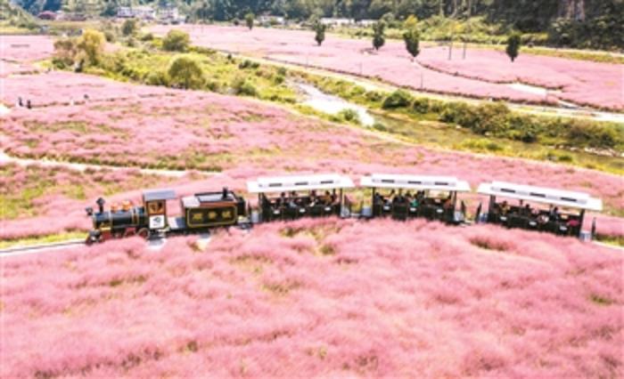 近日,贵州省黔南布依族苗族自治州长顺县神泉谷景区内的粉黛乱子草进入盛开期,成片的“粉色海洋”吸引众多游客前来观赏游玩。