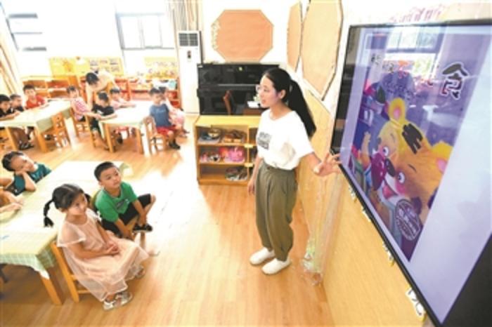 9月2日,在长沙市岳麓幼儿教育集团第二幼儿园,老师给小朋友们讲餐前故事,帮助孩子们从小树立爱惜粮食、反对浪费的意识,培养孩子们良好的用餐习惯。