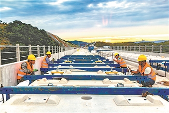据工区项目经理秦飞介绍,此次京沈客专北京段管段铺设的CRTSⅢ型预制轨道板,工艺复杂、施工标准高,由我国自行研发、拥有完全自主知识产权。 孔祥文 罗永君 摄