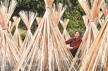 9月3日,村民在贵州省黔东南苗族侗族自治州天柱县高酿镇天裕竹制品厂里晾晒竹条。今年以来,天柱县丰葆村的一对返乡创业大学生夫妇就地取材,在村里创办竹制品厂,同时设立贫困户“创业车间”,为村民提供就业岗位。 新华社记者 杨文斌 摄