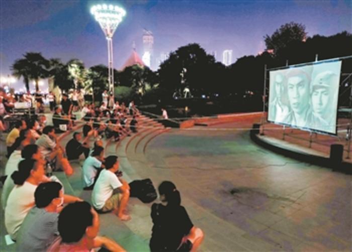 汉口江滩放映露天电影 纪念抗日战争胜利75周年