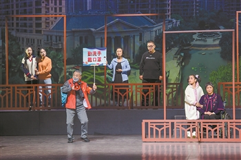 近日,湖北省第四届地方戏展演剧目汉剧《老八栋的灯塔》在荆州首演。该剧以湖北省荆州市沙市区老八栋小区的抗疫故事为题材,用传统的地方戏种汉剧为载体,讲述了抗疫期间社区工作人员、党员干部和志愿者团结一心、共克时艰,筑牢疫情防线的故事,旨在向抗疫英雄致敬。黄志刚 摄/人民图片