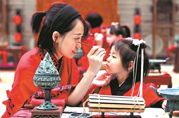 当日,一场汉服“开笔礼”在西安大唐西市博物馆举行,多名孩童着汉服,行汉礼,通过“朱砂开智”“启蒙描红”等环节体验中国传统文化。