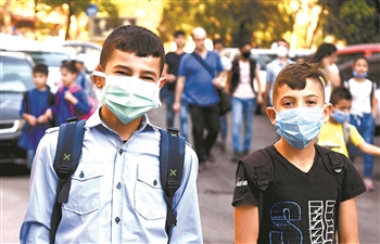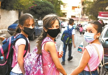 左图:这是9月13日在叙利亚首都大马士革拍摄的戴口罩的学生。
