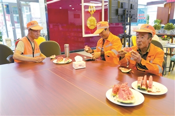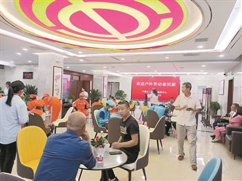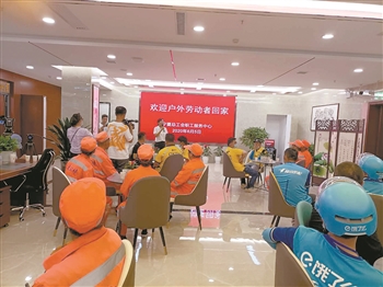 职工服务中心户外劳动者服务站的设立,切实增强了环卫工人、出租车司机、交巡警、快递外卖员等户外劳动者工作幸福指数。自启用后,先后开展了“请户外劳动者回家坐坐”、“宁工惠APP”推广送西瓜、“职工手机摄影展”奖品发放、“送清凉”等活动。服务站舒适温馨的环境、全面细致的便利设施配置、工作人员热情周到的服务,让户外劳动者切实感受到来自“娘家人”的特别关怀。现在,这里已经成为附近户外劳动者午休、用餐、饮水、阅读、充电的首选之地,他们感叹“进了服务中心就像回到家一样,这里的条件比自己家的都好”。