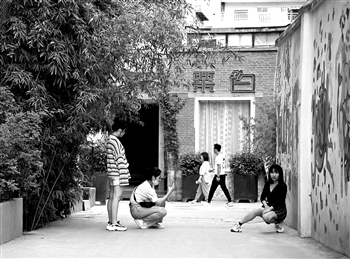 游客在瑞光创意工厂的涂鸦墙前拍照(9月13日摄)。