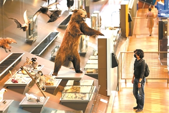 9月15日,在比利时布鲁塞尔的比利时皇家自然科学博物馆,一名男子参观动物标本。