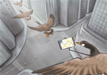 看,漫画《导航时代》,“看一看,走过路过别错过”,一群大雁飞入钢筋水泥丛林。看起来,这次不寻常的飞行,足以为这些候鸟带来与以往不同的体验。自信的领头雁在前方苦苦探索,其他“雁众”们在后面苦苦追随。或许飞了太久、飞得太累,飞得不那么自信了,于是,雁群中的智者开始启用了智能导航工具。可以预期,它们的困难能够得到有效解决,但留给我们的困惑没有结束。