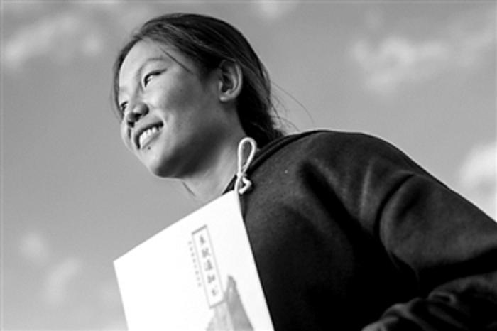 下图:索南卓玛展示西北民族大学的录取通知书。