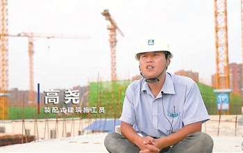 高尧是一名装配式建筑施工员。相较于传统工艺,装配式施工不再是一砖一瓦地砌,而是在现场装配预制好的墙板,更节能环保。一层600平方米的楼,传统工艺80个工人七八天才能完成,运用装配式工艺,40个人6天内就能完工。(本报记者 唐姝 吴凡)