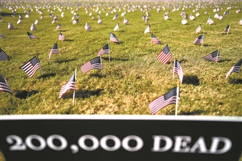 2万面美国国旗,被志愿者插在华盛顿国家广场上,纪念因新冠肺炎死亡的20万人。