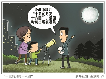 中秋节将至,又到赏月时。天文专家表示,今年中秋月“十五的月亮十六圆”,最圆时刻出现在10月2日(农历八月十六)凌晨5时5分。新华社发 朱慧卿 作