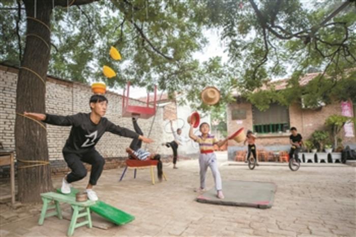 上至九十九,下到刚会走,吴桥耍杂技,人人有一手。享有“天下杂技第一乡”美称的河北省吴桥县,是中国杂技发源地之一。在2000多年的变迁过程中,吴桥杂技文化伴随着中国杂技的发展而形成。很多民间杂技团体也都在用自己的方式传承着祖辈留下的技艺,而遍布乡村的一个个杂技小院就是其中之一。这里不仅学费低廉,学徒们还能接受非遗传承人的手把手教学。
