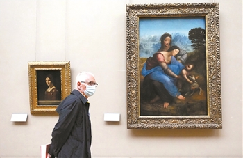 9月25日,一名男子在法国巴黎卢浮宫参观。 新华社记者 高静 摄