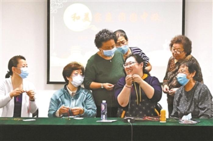在中秋节来临之际,东华门街道推出“和美家庭 团圆中秋”巧手古法老金手链编制体验活动,选线、拧绳、串珠、编线、打结……社区居民欢聚一堂,共迎中秋佳节。