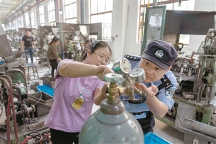 9月28日,江苏盐城市公安局亭湖分局东城派出所社区民警在一家灯具厂进行安全检查,要求工人关好氖气和氩气的阀门,做好安全防范。为预防各类安全事故,确保国庆节和中秋节期间辖区安全稳定,社区民警深入辖区车间,对企业安全管理机构、应急救援设备、员工教育培训等情况进行了检查,进一步明确了警示标识设置等现场安全管理要求,对存在的安全隐患提出了整改要求和时限。