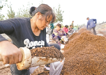 10月7日,滦南县青坨营镇前姜六庄村农民在制作食用菌菌棒。