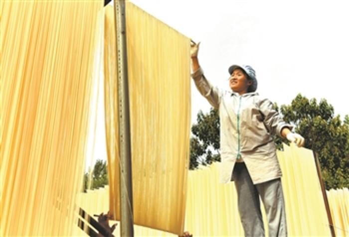 河北省邢台市威县梨园屯镇东赵村的手工空心挂面迄今已有上百年的加工历史。近年来,这个村采取“合作社+农户”的形式,把传统的手工挂面产业做大做强。目前全村相关从业人员达300余人,产品远销北京、天津、山东等地,年产值2000余万元,手工挂面生产已成为当地农民致富的重要途径。