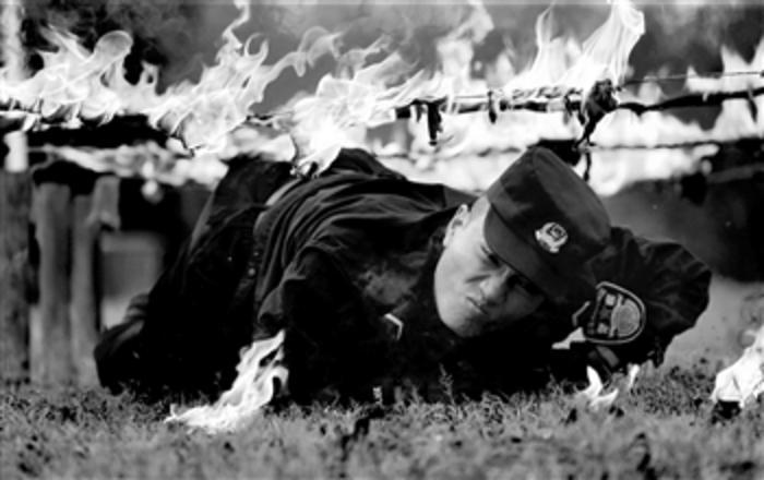 扛圆木、爬低桩网、实弹射击、反恐演练……10月12日,江苏苏州,太仓出入境边防检查站训练场上热火朝天,参训民警热情高涨。