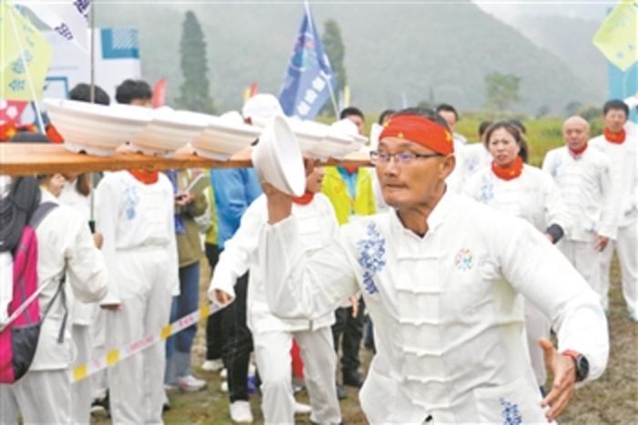 当日,一场窑工健身大赛在江西省景德镇市浮梁县湘湖镇进坑村举行,比赛设立了定向寻宝、独轮车比赛、踩泥挑战赛、驮坯挑坯接力赛、匣钵移动赛五个项目,吸引来自千年瓷都景德镇的33支队伍参赛。