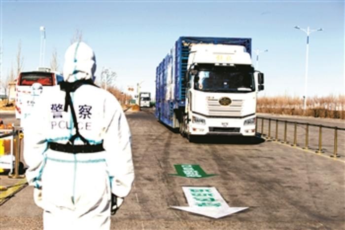 10月22日,内蒙古出入境边防检查总站二连浩特出入境边防检查站执勤民警对载羊车辆进行车体检查。