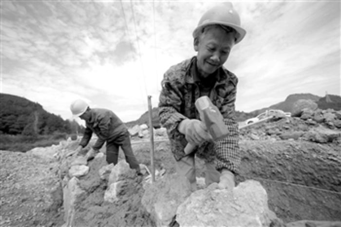 10月21日,在贵州省铜仁市玉屏侗族自治县朱家场镇兴隆村,工人在修建公路堡坎。