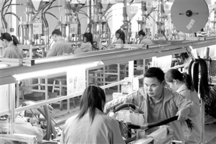 10月20日,在江西省兴国县联纲光电科技有限公司生产车间内,建档立卡贫困户管观(前排中)发正在电子产品流水线上忙碌,月收入3000元以上,实现了一人就业全家脱贫。近年来,该县通过开展培训,搭建用工对接平台,开发就业扶贫专岗,创建就业扶贫车间等多措并举,带动全县6.3万贫困人口全面脱贫致富。本报记者 吴凡 摄