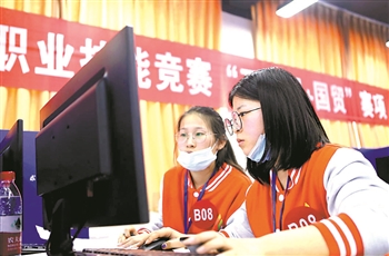 10月24日至25日,“巴渝工匠”杯重庆市第十三届高等职业院校学生职业技能竞赛“互联网+国际贸易综合技能”项目在重庆城市职业学院举办。来自该市13所高校的104名参赛选手,组成26支队伍同台竞技。图为进入决赛的参赛选手在认真答题。 本报通讯员 陈仕川 摄